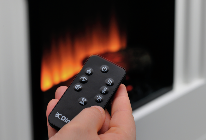 Enkel styrning: Justera smidigt kaminens inställningar via den medföljande fjärrkontrollen.